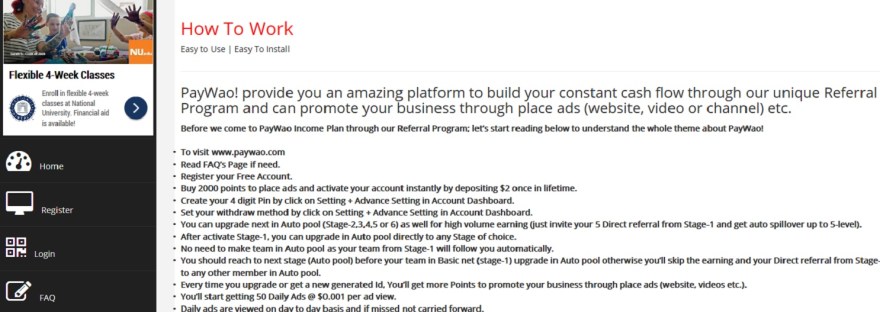 Pay-Wao is a paid to click (PTC) website where you can earn money by clicking on ads and inviting your friends to join. Furthermore, the site has a platform for businesses to help place their ads on a website, video channels and social media account. The site was designed with a fantastic platform and referral… Continue reading Pay-Wao Review – Legit or Scam
